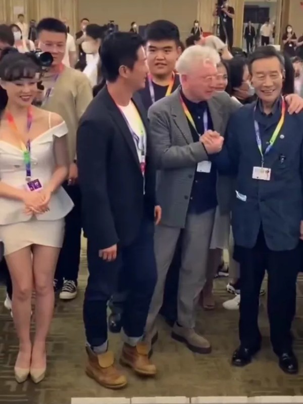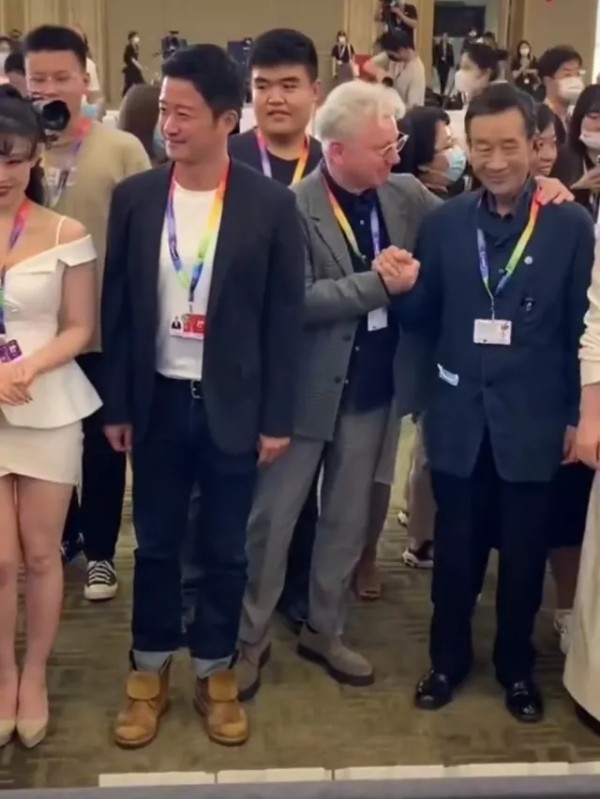 原来当天吴京在出席某活动,一位不明来历的女子站在他身旁。该女子不仅用手拉吴京衣服,打断他和李雪健老师的交谈,还尝试把手挽住吴京的手臂。