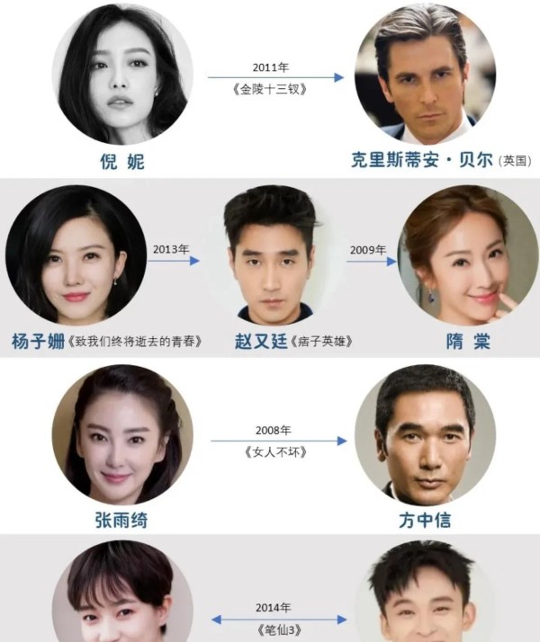 早一辈小花的初吻,串联的是“时代眼泪级”联动。 杨紫2013年《胭脂霸王》里的初吻赵显宰,早在2004年就和韩智慧在《新娘十八岁》里亲出了“韩剧启蒙级吻戏”。 蒋欣2003年《天龙八部》里的初吻林志颖,是《放羊的星星》《绝代双骄》里吻遍古装现代剧的“吻戏鼻祖”。 倪妮更绝,《金陵十三钗》的初吻直接“破圈”给了克里斯蒂安·贝尔,这位好莱坞影帝的吻戏早已演到奥斯卡级别。