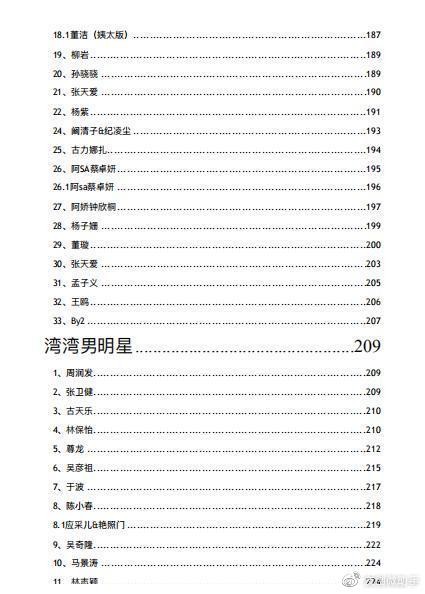 7月31日晚上,网上曝出421页的明星八卦PDF,这到底是怎么一回事呢?这里面都有哪些明星呢?其实,这是一位追星女孩写的,整个PDF里面写了200位明星,从当红小生小花,到港台天王天后,真的是啥都有,跟论文文献似的,还分类齐全。接下来,跟小编一起来看一下吧。