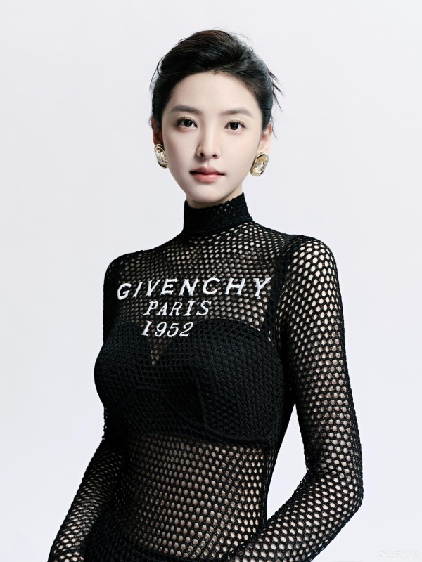 章若楠今年成为了纪梵希中国区品牌大使,品牌官宣那天,她去活动的造型一出来,直接就把热搜给炸了 —— 穿的是件黑色网洞透视装,外层那层薄纱朦朦胧胧的,还缀着点细碎的金属小装饰,里面搭了件简单的黑色内搭,既没丢了衣服该有的挺括劲儿,又悄悄漏出点小性感,分寸感抓得特别好。