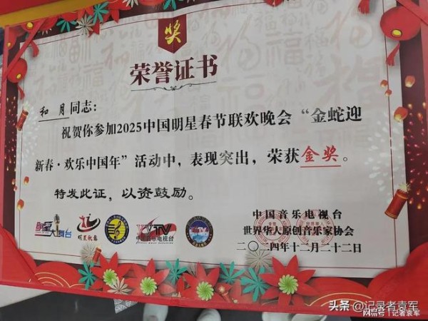 本网讯【记者袁军】2024年12月22日上午,一则令众多音乐爱好者瞩目的消息从北京传来,央视金牌歌手、著名音乐人——和月,受邀参加2025中国音乐电视台中国明星春晚,并于当日在中国音乐电视台进行了节目录制。