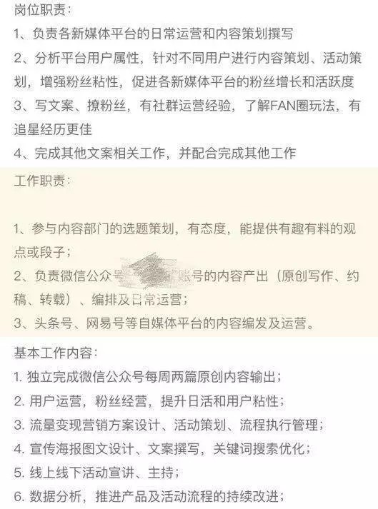 (PS:以上三条工作内容只是我根据截图三则招聘信息做的粗略分类,并非新媒体运营的所有工作内容,知友们不要误会了)