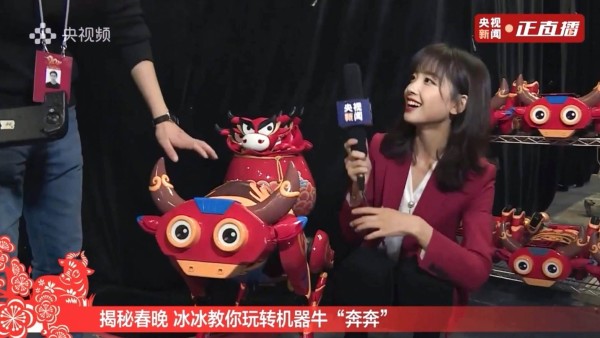 刘德华、王一博、关晓彤三位属牛明星与小牛犇犇的同台演出节目“牛气冲天”,必有姓名。其中,作为四足机器人代表,小牛犇犇可是在春晚大舞台上展现了一把好手艺。它们既是舞台上的“热舞牛”,也是舞台后脱下华丽外衣、送起盒饭的“打工牛”,还是与“我的心是冰冰”的冰冰一起拜年的“送福牛”。
