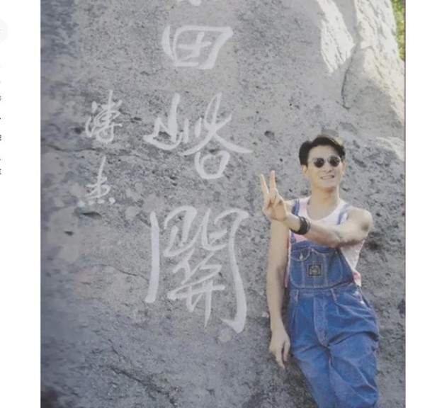 1994年,刘德华在长城上的照片。这时候的刘德华已经33岁,可是看起来还是像二十来岁的小伙子一样年轻。只见他穿着一件蓝色的牛仔背带裤,里面搭配一件粉色背心,看起来帅气又童真。他在长城上摆着各种有趣的姿势,活脱脱一个中二青年,完全没有明星架子。