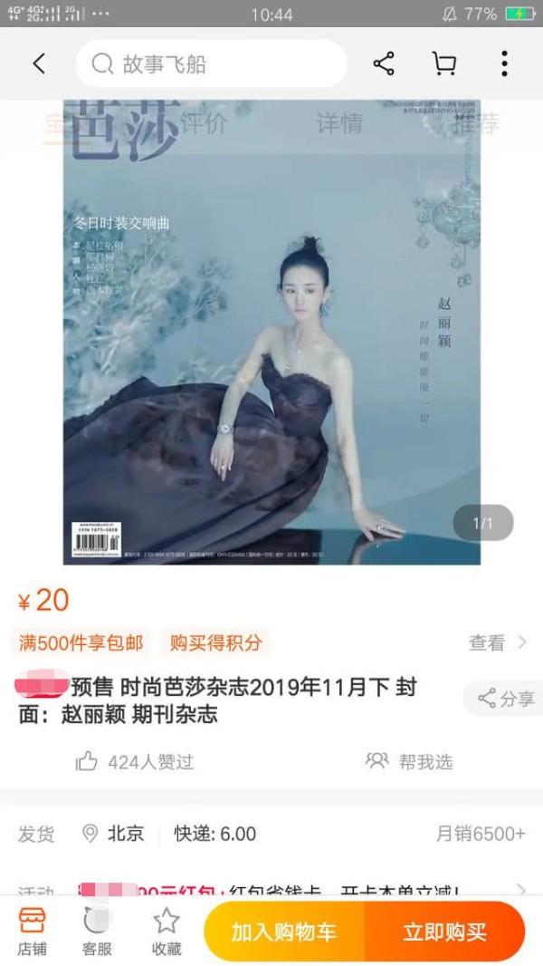 赵丽颖杂志在30分钟内卖6500多,远远不及杨紫5分钟卖出9000本的好销量。