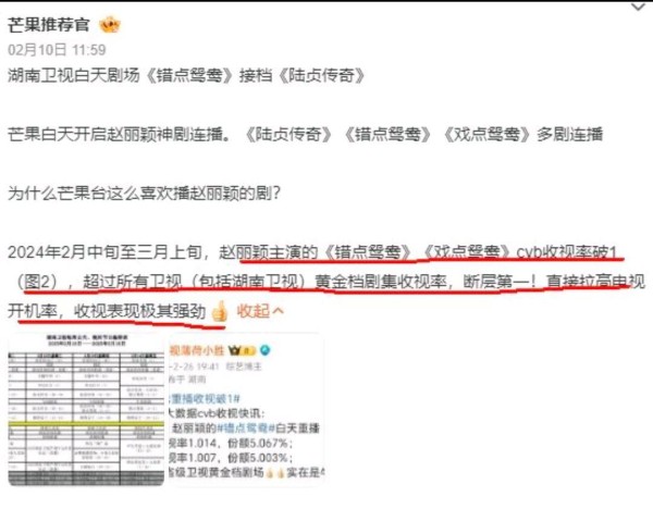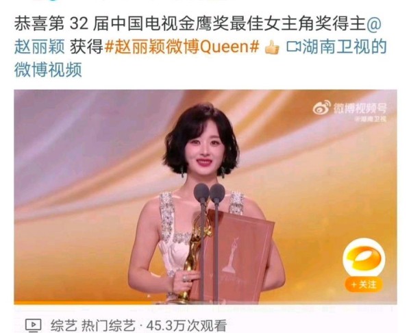 赵丽颖收视23连冠!湖南卫视发文