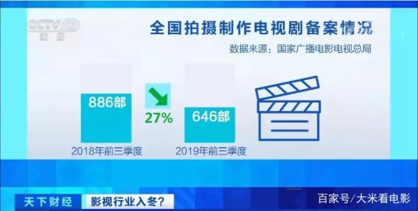 11月中旬《中国电视剧风向标报告》出炉,今年前三季度在国家广播电视总局备案的电视剧部数为646部,而去年前三季度为886部,同比下降了27.1%,同时集数跟去年同期相比减少了10612集,同比下降了30.1%。
