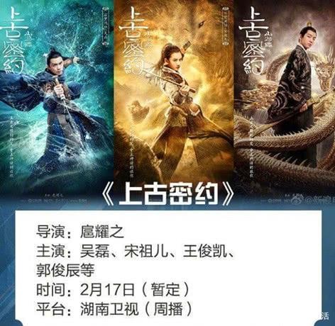 《古代秘约》中,吴磊和宋祖儿的古装奇幻剧,也要赶去档案馆,在2月份播出。2月17日,湖南卫视和芒果电视台(每周)播出。宋祖儿演白里红衣,吴磊演白里红朔,王俊凯演白里黑河。网友称之为“白月光”。鲜肉和鲜花聚在一起。估计这出戏又要火了!