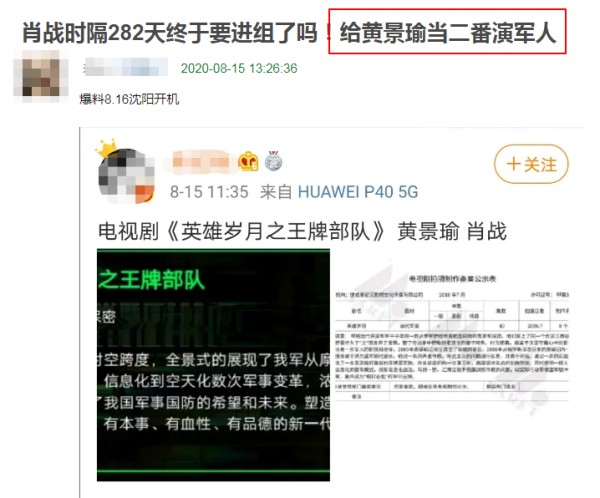 据网友爆料肖战将会和黄景瑜合作的剧是一部当代军旅题材《英雄岁月之王牌部队》,该剧目前还没有明确的官宣消息,一切都是网传。