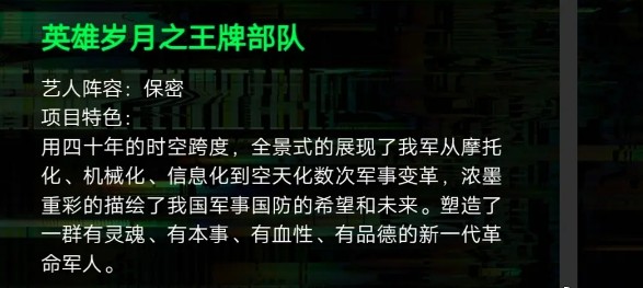 艺人阵容还在保密中,这部剧的特色是用四十年的时空跨度,全景式的将我军从摩托化——机械化——信息化到空天化数次军事变革展现出来。