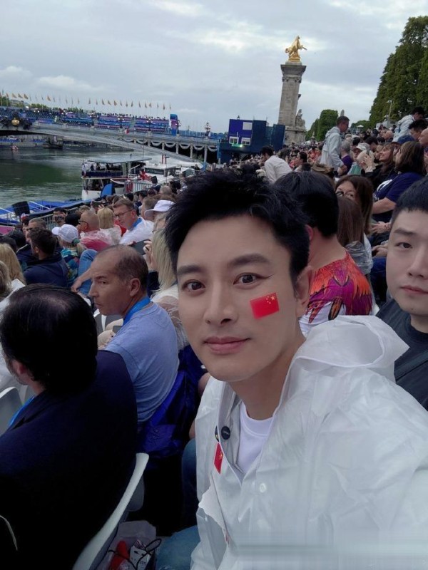 贾乃亮巴黎现场看奥运会,现场升国旗唱国歌热泪盈眶!