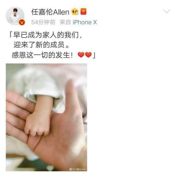 昨日任嘉伦微博晒出宝宝的小手照,宣布自己成为新手奶爸。任嘉伦自演广平王走红后一点偶像包袱都没有,该公布恋情公布恋情,该生娃生娃,真是个坦荡磊落的明星。