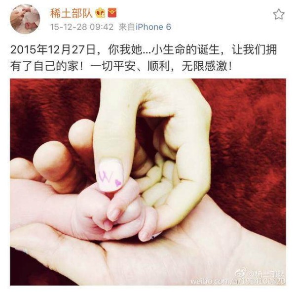 网址:宝宝出生明星发的第一条微博,贾乃亮的很感人,张杰的最特别! https://m.mxgxt.com/news/view/1908523