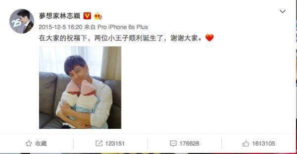 而其实在娱乐圈中除了张杰还有不少明星也生下双胞胎,比如大家熟知的不老男神林志颖。在2015年12月5日的时候迎来了这对双胞胎儿子,林志颖脸上洋溢着无比幸福的笑容。刚出生的孩子双双抱在怀中,看着让人感觉非常的有爱。
