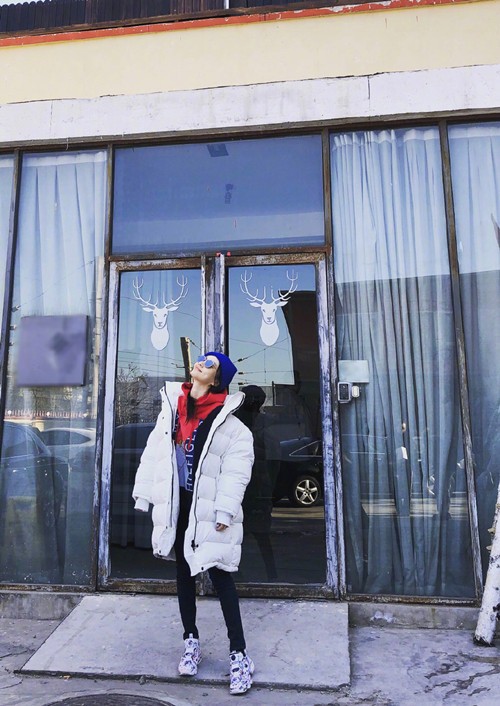 白色面包服+小脚裤,简约又保暖。一双增高运动鞋简直是小个子女生们的显高利器!
