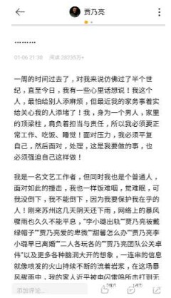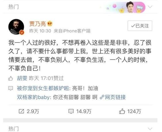 贾乃亮夫妇离婚协议疯传,李小璐方否认离婚:是假的,恳请删除