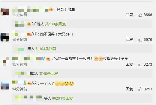 字里行间里,无不透漏着淡淡的心酸。一下子,网友们也炸开了锅。纷纷表示:“亮哥,加油!”、“她不值得”、“亮哥你可以过得更好!”……清一色都是鼓励贾乃亮的评论,为他加油打气。