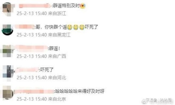 ▲网友在底下留言纷纷表示:「本尊出来辟谣了」、「特别即时!」、吓死了。 (图/翻摄自微博)