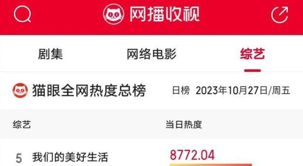 《我们的美好生活》一上线就引发了网友的热议,有人将其与《花儿与少年》进行对比,两档节目的粉丝也因此产生了激烈的争论。不过,不管怎么说,这两档节目都非常受欢迎。尤其是《我们的美好生活》,首播就给人带来了强烈的视觉冲击,上线第二天,全网热度就飙升了185位,跃升至第五名,这收视成绩对于一档新综艺来说是非常不错的。