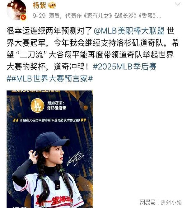 这个杨紫还是太神了!连续三年说准MLB冠军,含金量杠杠的