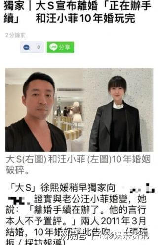 而大S和汪小菲夫妻却也曝出感情危机,大S还放言已经跟汪小菲离婚。