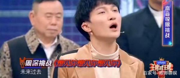 《王牌对王牌》中的游戏“挑战高音”环节,周深唱得《想见你想见你想见你》,直接升八度的操作已经惊呆了众人,而之后的升半个,再升半个,简直堪称“高音之神”!虽然是综艺节目,这样的升高音也充满了综艺效果,不得不说,周深还是很适合综艺节目的!