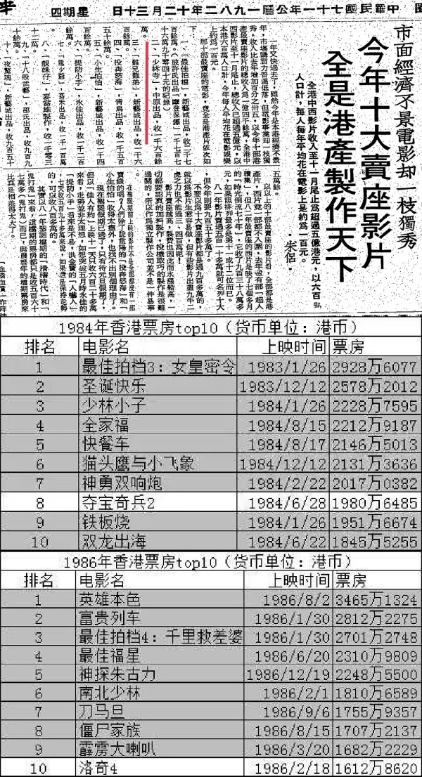 数据帖!李连杰大男主《少林寺》《少林小子》《南北少林》总票房PK同年香港市场票房冠军《最佳拍档1》《最佳拍档3》《英雄本色》