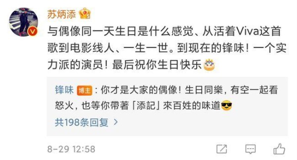 接着,苏炳添也亮相谢霆锋发表评论留言板留言表明:“与偶像同一天生辰是啥觉得、从活著Viva这歌到电影线人、一生一世。到现在的锋味!一个实力派演员的艺人!最终祝你们祝你生日快乐”。