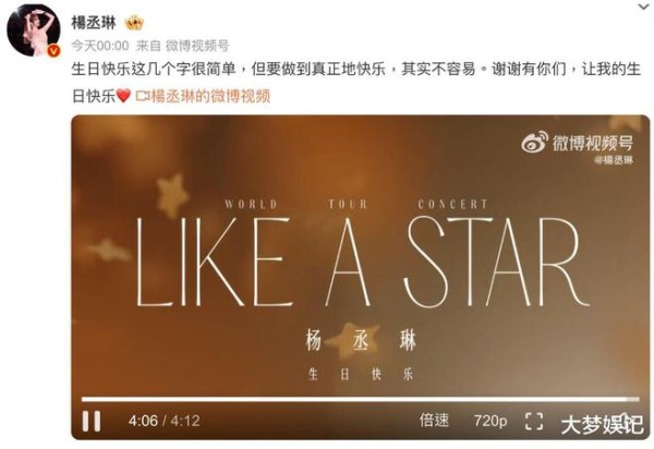 杨丞琳64生日,只在微博发文!37字谢粉丝:其实不容易