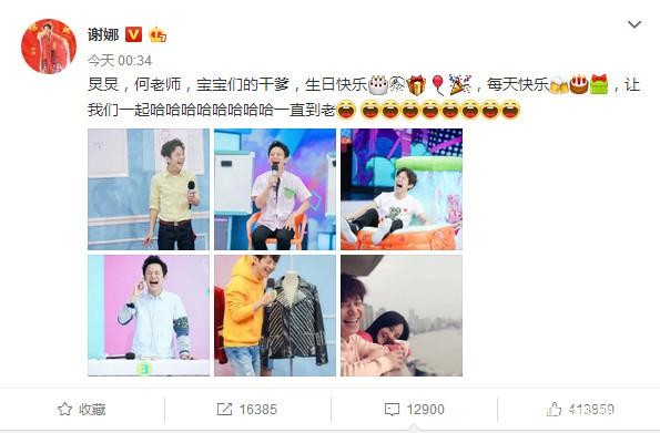 其中谢娜在微博上写道炅炅,何老师,宝宝们的干爹,生日快乐,每天快乐,让我们一起哈哈哈哈哈哈哈哈一直到老。谢娜和何炅的关系一直是娱乐圈中人人羡慕的一段友情。如今谢娜双胞胎都有了。何炅也该努努力了,先找个女朋友啊。