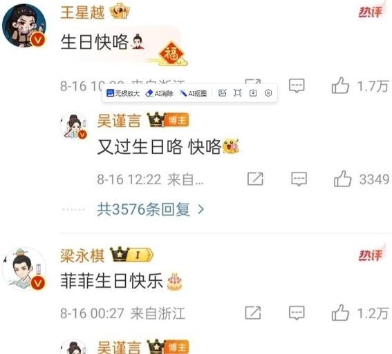 当然了,生日嘛,肯定得有祝福声啦!这不,《墨雨云间》剧组的两位男演员王星越和梁永棋,那可是率先在社交媒体上发声了,用真挚的话语给吴谨言送上了生日的喜悦。特别是梁永棋,哎呀,他的留言可是勾起了不少粉丝的回忆呢,大家都说感受到了剧组间那深厚的情谊,就像是家人一样。