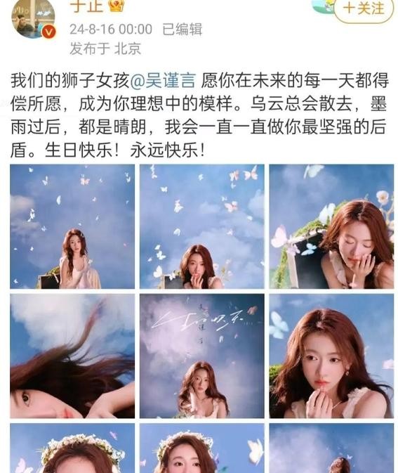 说到吴谨言,那就不得不提她的老板于正了。作为她事业上的重要推手,于正这次当然也不会缺席啦!他卡点发文,字里行间都是对吴谨言的赞赏与期待。他不仅回顾了吴谨言一路走来的不易,还承诺将继续全力支持她的演艺事业。哎呀,这简直就是最佳老板的典范啊!