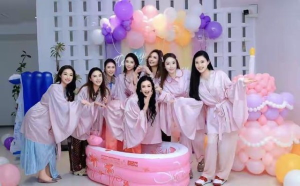 姐妹团的姑娘们都穿着一样的粉色蚕丝睡衣,一头长发显得特别有气质。她们站在精心装饰的派对墙前拍照,个个身姿轻盈、笑容灿烂,就像一群从天上来的仙女,美得让人移不开眼。钟丽缇站在最中间的位置,显然是大家的“心头宝”,可见她在姐妹们心中的地位有多重要。这样的合影,既好看又让人感到温馨。