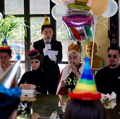 这次柳炳宰的生日派对在6日举行,当天现场有32位通过IG邀请来的嘉宾,主题是「不能笑」,如果笑出来就会有惩罚。从照片中可以看到为了逗别人笑而精心准备的服装,看起来非常有趣啊!(这是公开徵选,只要录制一个表情严肃祝贺柳炳宰生日快乐的影片,即可参加徵选)