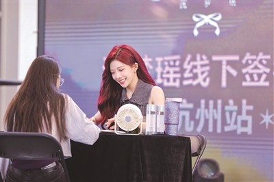 签售会上,台上的沈梦瑶给每一位粉丝都留了充足的互动时间,一会儿帮粉丝拍照,一会儿和粉丝低头窃窃私语。