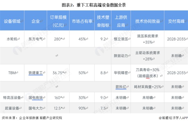 雅江集团产业链上游的高端设备制造领域呈现“设备类型-企业-订单规模-技术壁垒”的多维竞争格局。在水轮机领域,东方电气作为核心供应商,凭借国内45%的水轮机市场占有率形成显著竞争优势。其技术壁垒体现在高原复杂环境的定制化能力,预计将占据雅下工程水轮机及附属设备总价值的40%以上份额,对应订单规模超280亿元。在隧道掘进设备(TBM)领域,铁建重工以50%的国内市占率占据主导地位。其竞争优势在于硬岩TBM的技术突破,预计承接25台硬岩TBM订单,订单占比达45%-68%,对应金额中值为36.75亿元。