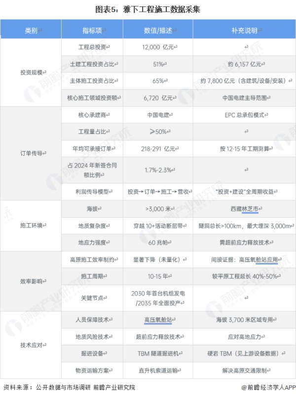 本文核心数据: 雅下项目产业链全景,雅下项目工程数据采集