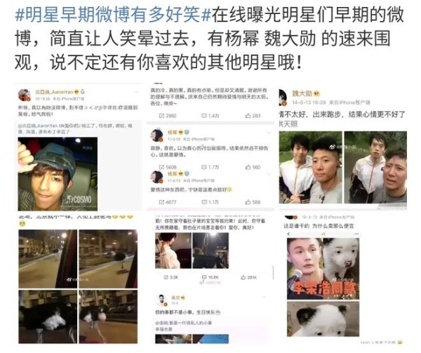 不久前,“明星早期的微博有多好笑”相关话题登上热搜。网友们扒出明星们多年前的微博,段子、非主流照片、趣味小视频比比皆是。