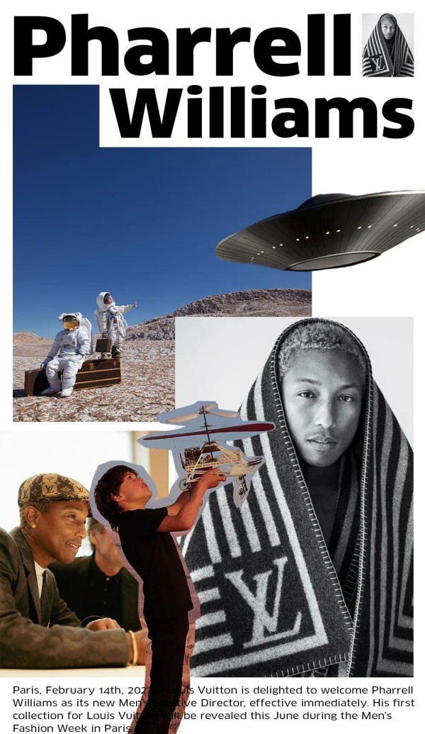 在情侣们沉浸于节日的欢庆之际,LVMH集团宣布Pharrell Williams接替Virgil Abloh担任Louis Vuitton男装创意总监的职位,引发了广泛关注。这一变动预示着品牌即将翻开崭新的一页,然而,这也引发了人们的思考:明星如何能够胜任大牌设计师的职位?
