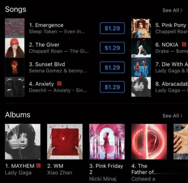 Lady Gaga《一个明星的诞生》电影原声拿下美国iTunes专辑榜冠军