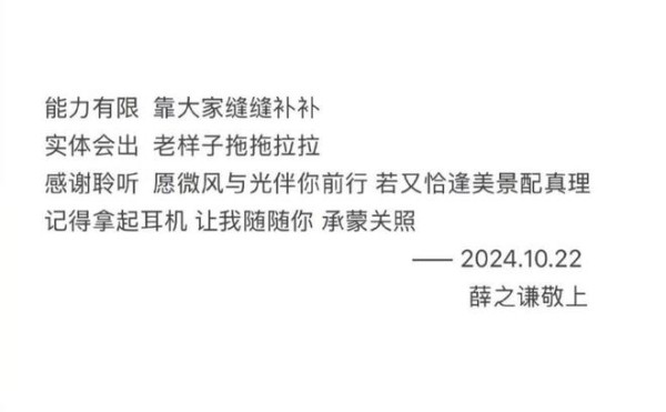 从近几年发的专辑中可以看出,薛之谦更擅长创作直白、简单、节奏明快的情歌式作品,这类作品往往在收听时不须花费力气,主打“直给”。但除了带给歌迷爽感,也希望他能创作出更有内容、更耐听的经典之作与时代之作。
