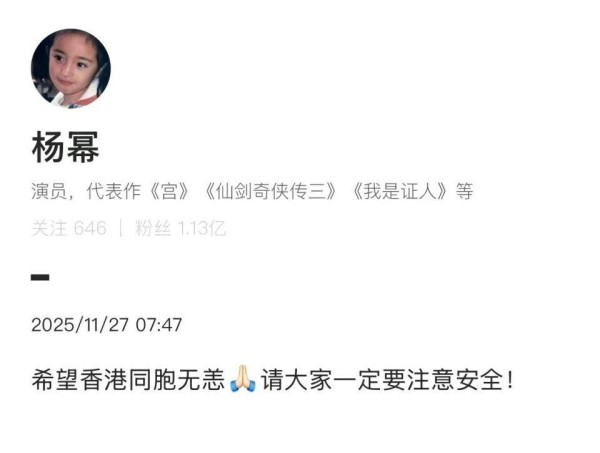 11 月 26 日,香港大埔宏福苑一场五级大火,让全港陷入悲痛。截至 27 日晚,在这场特大火灾中,已经有 75 人遇难、70 人受伤,灾情牵动着所有人的心。当消防人员动用 200 多辆消防车、1250 余人投入救援时,娱乐圈也在 24 小时内完成了一场从商业暂停到爱心集结的集体行动,用实际行动诠释了 " 星光不及生命重 "。