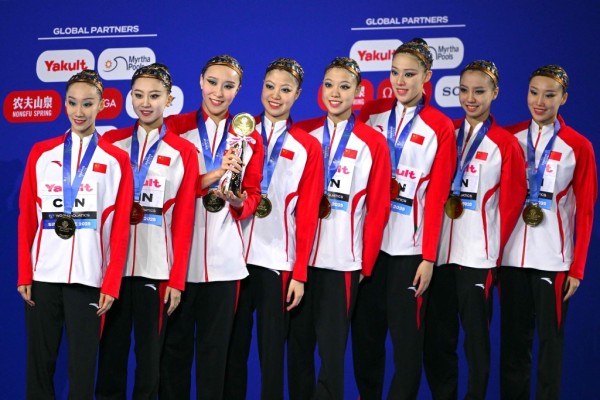 4金3银,位列金牌榜第一,这是中国队在本届世锦赛花游项目上交出的成绩单,并且中国队包揽了全部三枚集体项目金牌。
