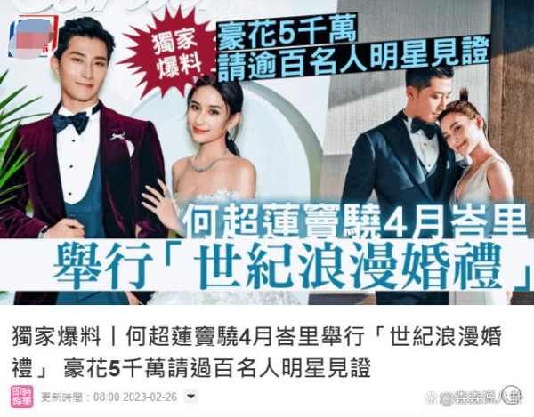 港媒曝何超莲窦骁今年4月在巴厘岛结婚,豪掷半亿邀百位明星出席