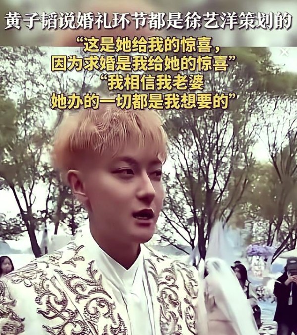 这种做法引发了某些人的议论:“男主外女主内的传统呢?”结果,新娘徐艺洋一句“求婚归你,婚礼归我”巧妙地抢占了台词。据现场朋友透露, 徐艺洋连夜制作PPT,巧妙地将婚礼设计成“电竞局”“菜园子”和“afterparty”三个篇章。而黄子韬则完全放手,只在交换戒指的瞬间,悄悄补充了一句“以后家务我包”。