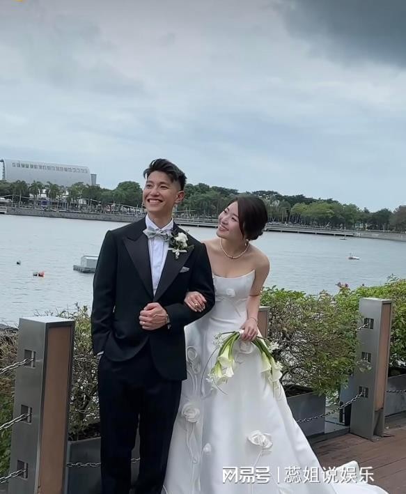 许恵菁在香港的婚礼上再次身着白色婚纱,虽然款式相对简约,与她在新加坡婚礼上所穿的奢华婚纱相比略显朴素。