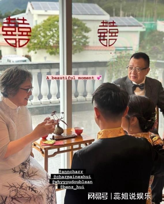 许绍雄夫妇穿着华丽,现场氛围庄重隆重。26岁的星二代许恵菁是老戏骨许绍雄的独生子女,婆家家境富裕,因此两地均为他们举办了婚礼。