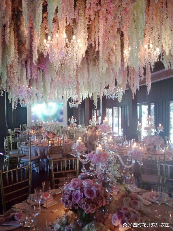 林心如和霍建华的婚礼上,使用了超过5000串的紫藤花,将现场直接变成一整个绮丽花海,震撼全场。