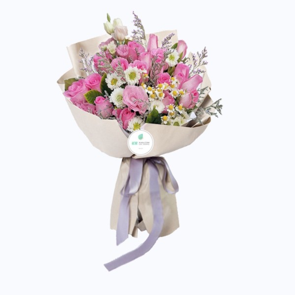 Full love浓情鲜花系列19枝苏醒玫瑰+2枝粉色桔梗