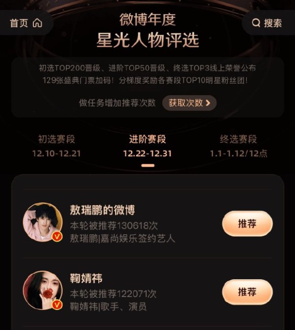 投完星光大赏投微博之夜,12月底疯狂冲kpi啊。但鞠粉是我见过粘性最高和最能打的女演员粉了,花粉能和生粉对打的真的不多。
